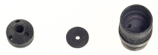 Proper reconditioning will entail complete disassembly. Removal of the hood (shell) is essential, inasmuch as the collector (at the left above) is prone to clogging -- and when dried ink residue packs the finely-ribbed ink trap, it often cannot be removed by soaking and ultrasonic cleaning alone. A 51 with gunk in the collector may work, but it will be more vulnerable to flooding and ink flow may not be consistent.